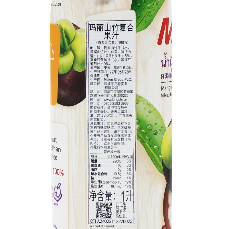 Malee UHT 100% Mangosteen Juice mixed Pomegranate and Red Grape Juice 1L