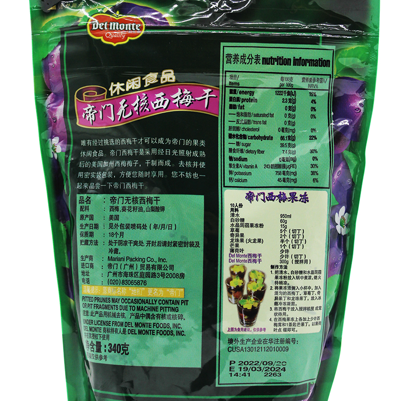 Ingredients: Prune, sunflower seed oil, sorbic acid potassium.