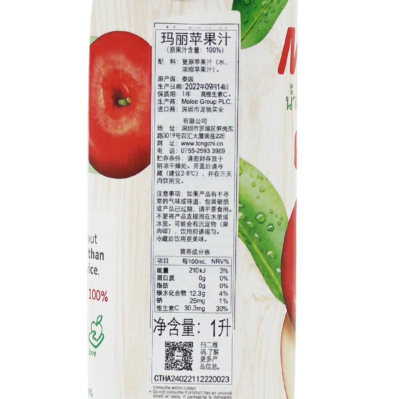 配料:复原苹果汁(水,浓缩苹果汁)。